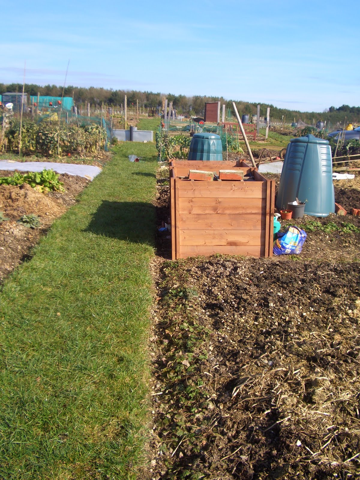 And the all important compost bin had high priority - seen in the distance. I made mine rather inexpertly from wooden pallets and string (!), but later we shall see, perhaps unsurprisingly, that it did not survive for very long.